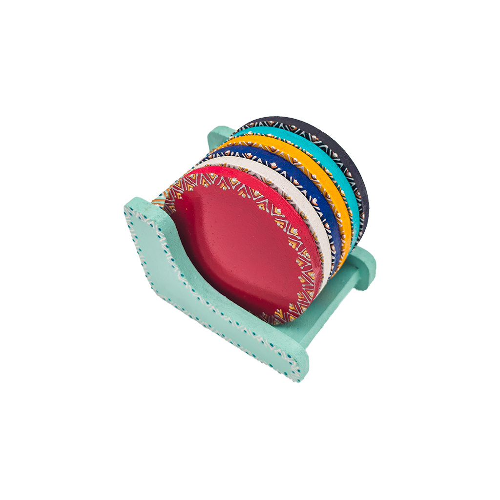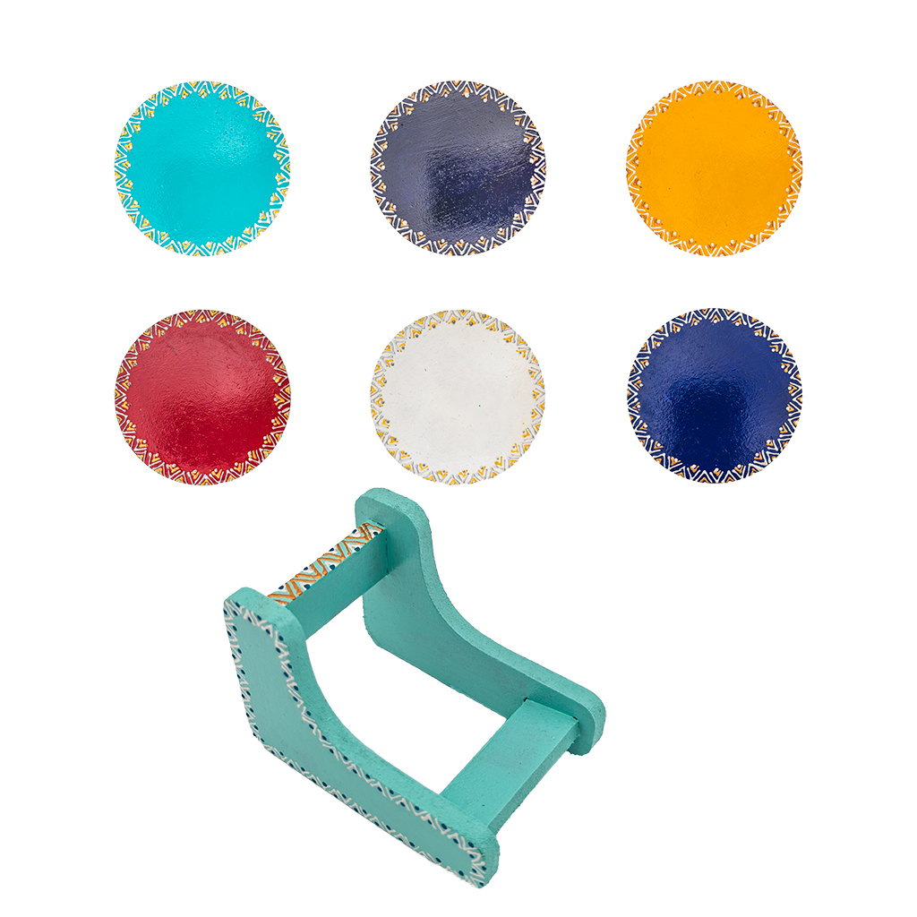 Pratiques au quotidien, ces sous-verres en bois protègent la table tout en ajoutant une touche artisanale et colorée à l’espace. Ils sont parfaits pour le thé, le café ou toute boisson servie à la maison. Le support permet de les garder bien rangés et toujours à portée de main. Un bel objet utile et décoratif qui apporte chaleur et authenticité à la table.